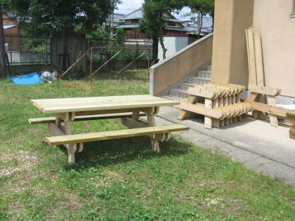 ふれあいパークにテーブルができました。これから,夏休みの校内キャンプやふれあい事業,給食などで活用されそうです。