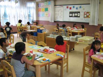 2組は6日と7日、1組は8日と10日にランチルームで給食を食べます。