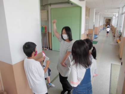 学習のゴールに,自分たちが使えるようになった表現を使って,教職員にインタビューをしました。Do you clean the bath ? Do you walk the dog ? などの表現を使いながら,たくさんのインタビューをすることができ,やり取りを続けることができました。