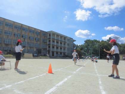 子どもたちは,自分に合ったインターバルを見つけ,「トン・1・2・3」のリズムに合うように走っていました。