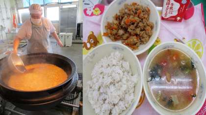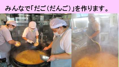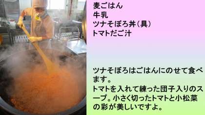 急に寒くなって,「スープで体も温まるかな?子どもたち」と言いながら給食室では手作りのトマト入り団子を一つ一つ釜に落とし入れながら,美味しい「だご汁」を作ってくださっていました。1年生はトマト入りのだご汁を初めて食べる子が多く,苦手と思う子もいたようですががんばって食べていましたよ。