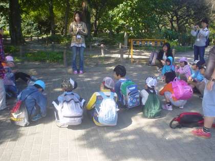 美豆, 明親,納所の育成学級の友だちで,府立植物園に社会見学に行きました。お天気に恵まれ,虫取りや宝探しなど,仲良く楽しく活動しました。