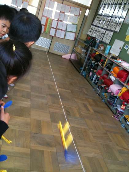理科「風やゴムのはたらきを調べよう」で使っていた走る車。