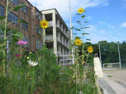 おはようございます。今週は個人懇談会の一週間です。4月からの学習を振り返り,夏休み中の過ごし方などを話し合います。学校の花壇も夏の様相になり,ヒマワリが元気いっぱいに空に向かって伸びています。今日も暑くなりそうです。熱中症にはくれぐれもご用心ください。
