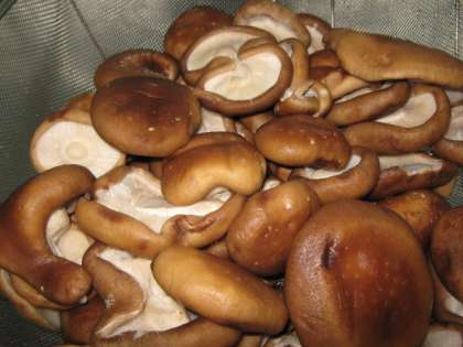 『きのこのクリームシチュー』に,今日は「生しいたけとシメジ」を入れました。店先では一年中出回っていますが,給食では10月からしか使えません。