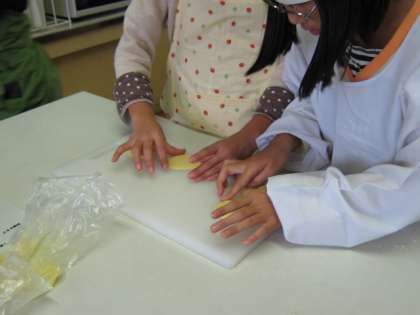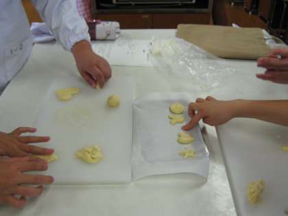 ミッキーやくまさん それぞれ好きな形を作っていました。ちょっと焦げたグループもありましたが,美味しくいただきました。