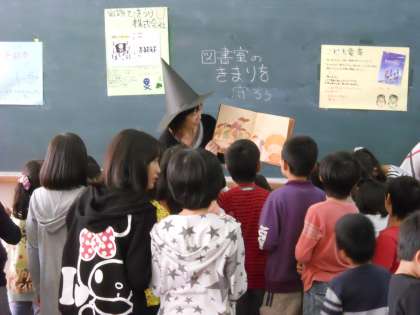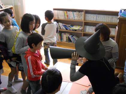 読書週間中である18日(火)、「図書ボランティア」の方々が、今年も楽しい「ハロウィン イベント」を開いてくださりました。