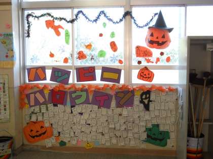 ・・・それぞれの子どもたちが考えた「おばけ」を図書室に飾る・・・「かわいい!」。