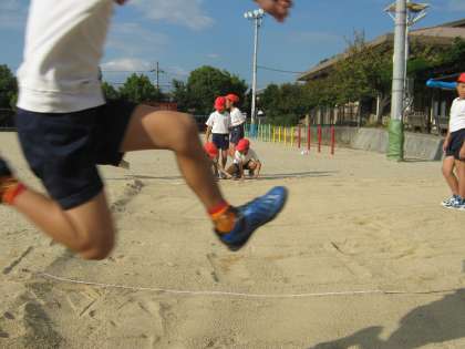 どの子も一生懸命走り,勢いよく跳んでいます!