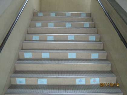 階段に問題を貼り,いつでも問題を解けるようにしています!!!