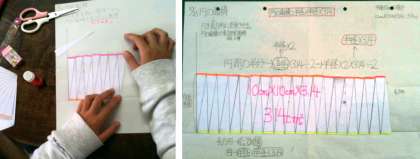 円を長方形に変身させ、長方形の面積を求めることから、公式を導きだしました。