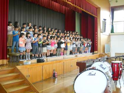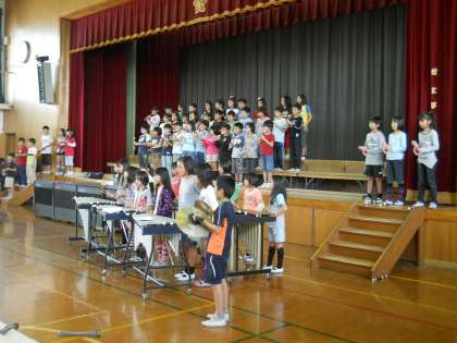 歌は「音楽のおくりもの」と「明日へ」という曲を歌います。2パートに分かれたり,きれいに高く歌声を響かせたりするのに苦労しましたが,さすが音楽大好き4年生!とてもきれいでまとまりがある歌声になりました。