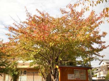 今日はサクラを観察しました。改めてよく見てみると,もうすっかり紅葉が始まっていますね!