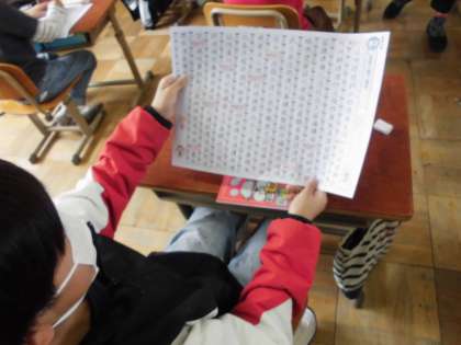 国語科の学習では,新しく習う教材文の音読をしたり,新出漢字を練習したりと,45分の中で様々な活動を行います。5年生の初めの物語は「なまえつけてよ」です。漢字は,一覧表を見ながら,自分の名前の漢字や画数の多い漢字を探して学習の見通しを持っていました。