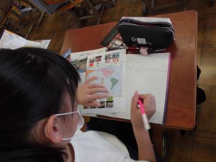 さらに,世界の中の6つの大陸や3つの海洋を地図帳を使って調べました。どの大陸にどのような国があるのか,日本の近くにはどのような大陸や海洋があるのか,しっかりと覚えていってほしいです。
