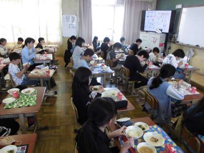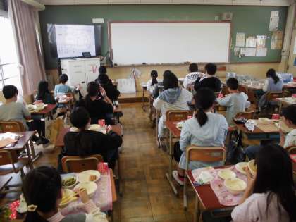 この日の献立は,さばの竜田揚げでした。魚を食べると体にとっていいことがたくさんあるということをスライドを通して学び,残さず美味しくいただきました。