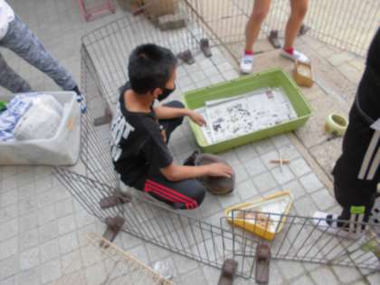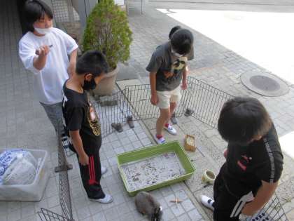 この日は,飼育委員会の子たちがフワワの飼育ケージの掃除をしました。フワワが気持ちよく過ごせるようきっちりと掃除をしていました。