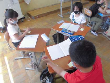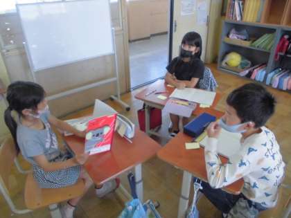 自分たちの考えたオリジナルのお話を交流し,感想を伝えあいました。