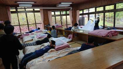 ネイチャービンゴで良く歩きました。5年生から順番にお風呂に入っています。今は、それぞれの部屋でゆっくりくつろいでいます。隣どうしにならないように、布団を敷いていました。二段ベッドの部屋もあります