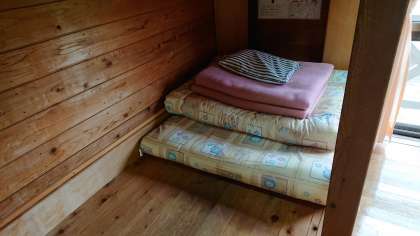 朝は6時に起床して、自分達が泊まった部屋の片付けやシーツや布団の片付けをしました。布団やシーツのたたみ方も決まりがあって、なかなか苦労しています。