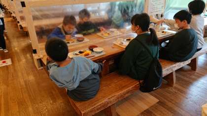 昨日の夜ご飯を食べたのは夕方5時でした。朝はお腹がペコペコと言う人もたくさんいました。パンかご飯を選べたり、お味噌汁かコンソメスープが選べたりします。しっかり食べて今日の活動に備えましょう。