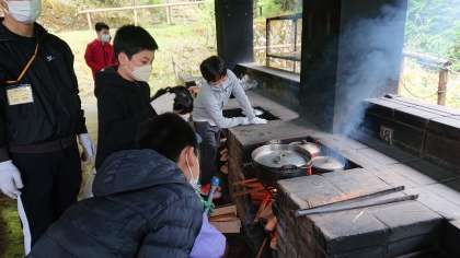 花脊山の家 野外炊事、進んでいます