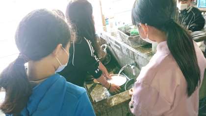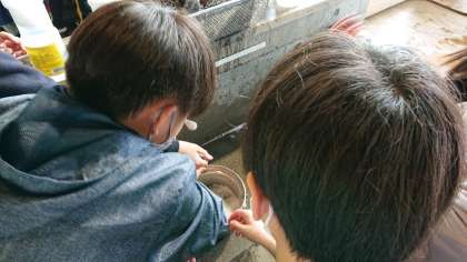 野外炊事で美味しいカレーをいただきました。どの班も美味しく出来て、カレーもご飯も完食です。美味しく食べたあとは片付けです。鍋についた炭や米粒を一生懸命に取ります。山の家の所員さんに合格をもらえるように頑張っています。
