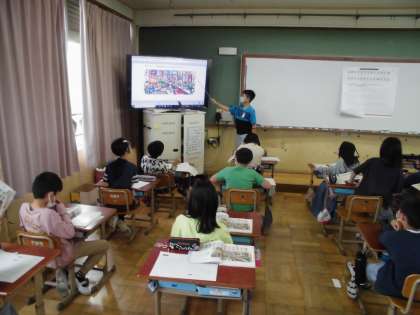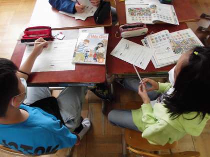 5年生の外国語で,自己紹介をしあう学習を進めています。この日は,練習してきた名前のつづりのたずね方を生かして,友だちと名前のつづりを聞き合いました。初めは聞きなれなかった言葉や文章も,言っているうちにだんだんとなじんできています。
