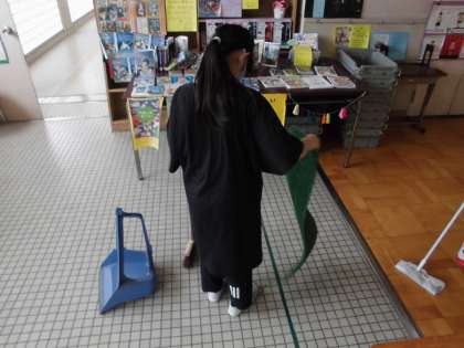 山の家では,学習の一つのテーマとして,「来た時よりも美しく」を実行してきました。部屋や野外炊事で使った道具など,次の人が気持ちよく使えるように心掛けていました。山の家から帰ってくると,掃除の仕方も上達しているように感じられました。