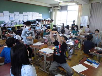 好きなスポーツをたずね合うときには,大きくジェスチャーも交えながらやり取りができました。