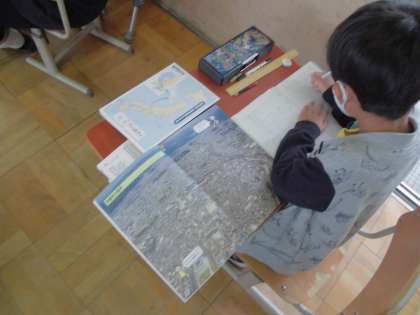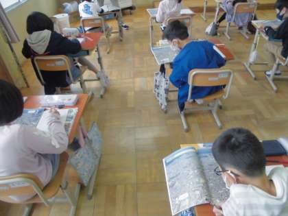 社会科で自分たちの住む地域について学習したので,次は京都市について学習しています。今までに行ったことのあるとことや,知っているところを話し合いながら,これからたくさん調べていきます。