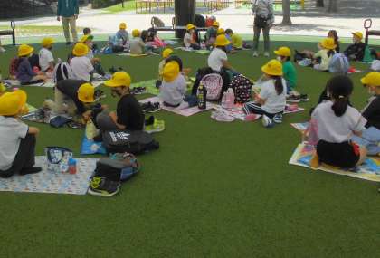 現地につくと,1,2年合同のグループ行動をしましたが,2年生のお兄さん,お姉さんとして1年生に「どの遊具で遊びたい?」と聞いたり,自分のお弁当を片付けてから1年生の片づけを手伝ったりする素敵な姿が見られました。