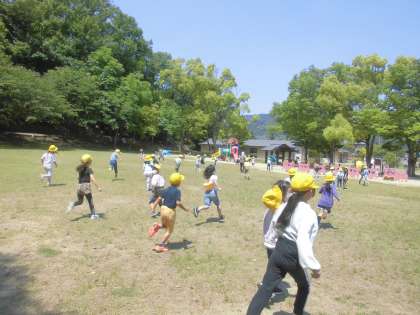 午前中は遊具で遊び,おいしいお弁当を食べてから午後は広場で鬼ごっこなどをしました。