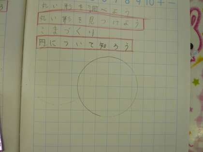 『使いにくい〜』と言っていましたが,ノートにできた円を見ながら,どの子どもも
