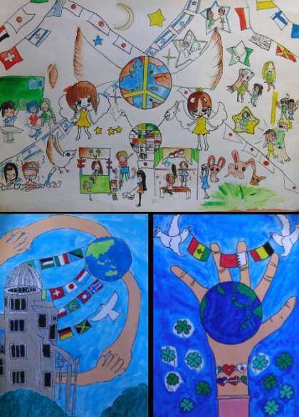 平和ポスター・コンテストでいくつかの作品が選ばれ公的会場で展示されることになりました。平和を願う力作です!★ミ!