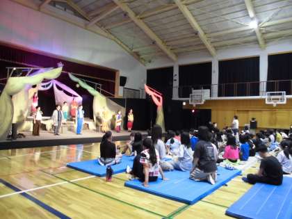 劇団員の皆さんのセリフや動き,表情や歌や踊りを間近で見ることで,ものすごい迫力を感じることができました。子ども達も食い入るように演劇を見つめ,物語の世界に入り込んでいました。
