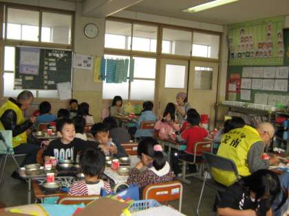 今日は,いつもお世話になっている見守り隊の方との交流給食がありました。2・4・6年のクラスに入って一緒に給食をいただきました。