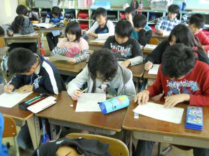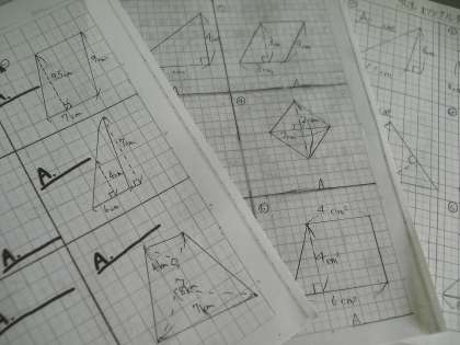 算数科で学習中の「面積」のたしかめを,昼のきらっとタイムで行っています。子ども達のオリジナル問題に取り組んでいます。与えられた問題を解答するだけでなく,学習したことを生かし,出題者として問題を作成する力も大切です。確実に定着していくでしょう!