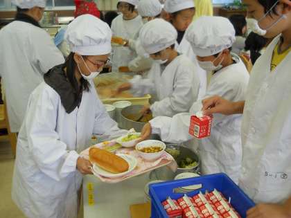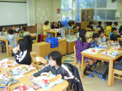 4校時の食の指導の後,ランチルームで給食を食べました。いつもの教室とは・・・,環境も違えば会話も違っていました。食に関する話のネタがたくさん聞こえてきた気がします。
