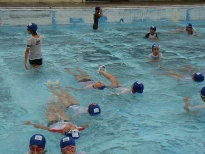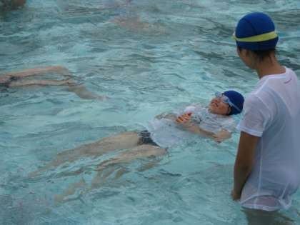 6年生の「着衣泳」の指導に入りました。溺れている人を助けることはとても困難ですが,自身が助けを待てるスキルをつけてもらいたいと,基本の指導をしました。「泳ぐことよりも浮くこと」を強調して,体験してもらいました。