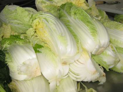 『白菜のごま煮』には,白菜と小松菜を使いました。普段は,小松菜は冷凍を使っているのですが,冬場に少量(1人あたりの)使用のときは,年に何回か冷凍ではなく生の小松菜が使えます。冷凍ではない歯ざわりを楽しむことが出来ます。