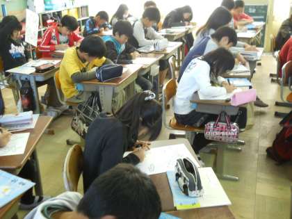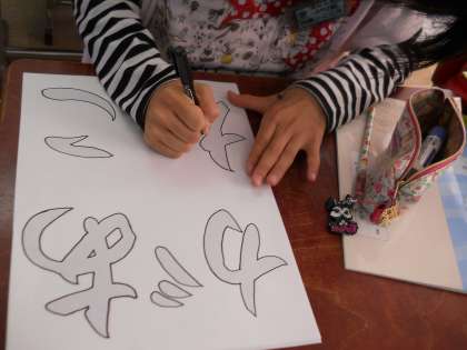 「あこがれ」のかご字をとりました。かご字とは,毛筆手本を縁取って写すことです。仕上がった作品は写し取っているので,当然「うまい!きれい!」という印象を受けるものです。こんなふうに書きたいなぁ・・・という「あこがれ」を持って筆を執りましょう。