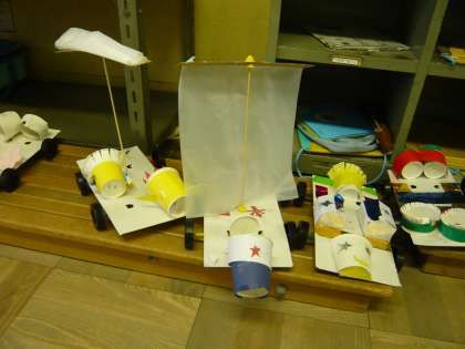 風を受けて走る車が完成しました。