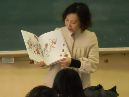 読書ボランティアの方に,読み聞かせをしていただきました。絵本のイラストを眺めながら話を聞いていると・・・その世界に入り込んでいくようでした。短時間でしたが,物語をしっかり楽しむことができました。