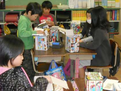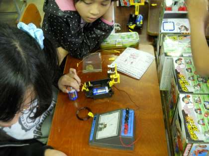 電磁石を作り,導線に電流を流し,電磁石の強さの変化について実験を重ねてきました。今日は,電流計を使って,電磁石の強さと乾電池の数,流れる電流との関係を調べました。グループで装置をセッティングし,実験を始めるところです。