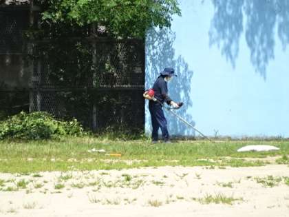 運動場の草刈りや、トラックのテープ貼り、体育倉庫の整理整頓などなど・・・