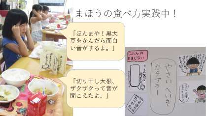 噛むときの音、食感などを見つけながら食べることで、苦手な食べ物もだんだん食べられるようになります。