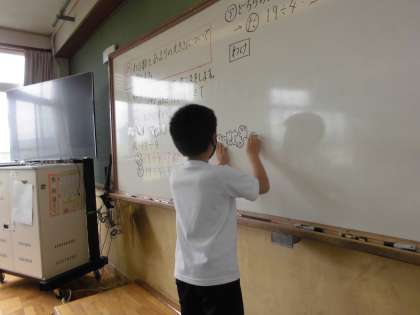 みんなあまりのあるわり算にだいぶ慣れてきました。九九や図を使って考えています。