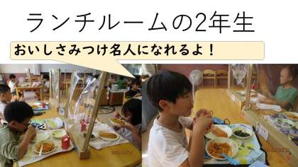 ランチルームの2年生は、1年の成長を感じさせてくれる食べっぷり! 苦手なものも食べきれるようになってきましたよ。
