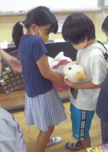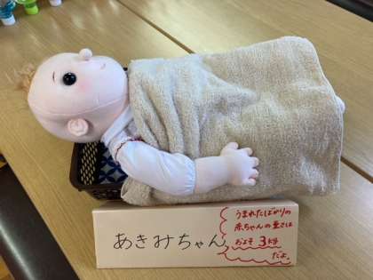 自分が生まれた時のことや今までの成長について絵本を読んだり、みんなで話し合ったりしました。その後に、生まれたばかりの大きさの赤ちゃん人形をひとりひとり抱っこしました。赤ちゃんの重たさに驚きながらも、「お家の人は毎日こんなに重かったんだ。」「大切に育ててくれたんだね。」と言っていました。